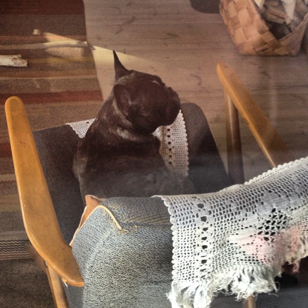 #valper convinced Ida that he was allowed to sleep in the chair. #frenchie #frenchbulldog #fralla