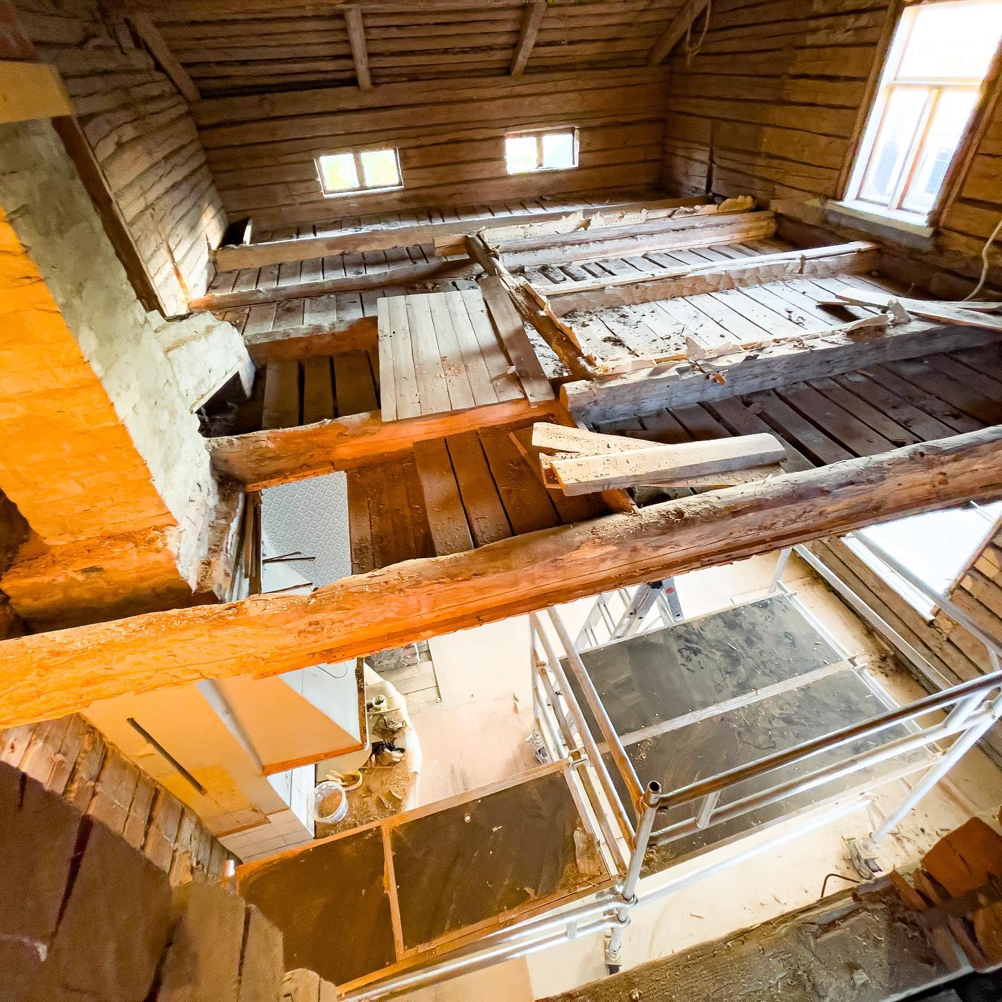 Så här ser det ut på vår över- och nedervåning nu. #gamlahus #byggnadsvård #timmerhus