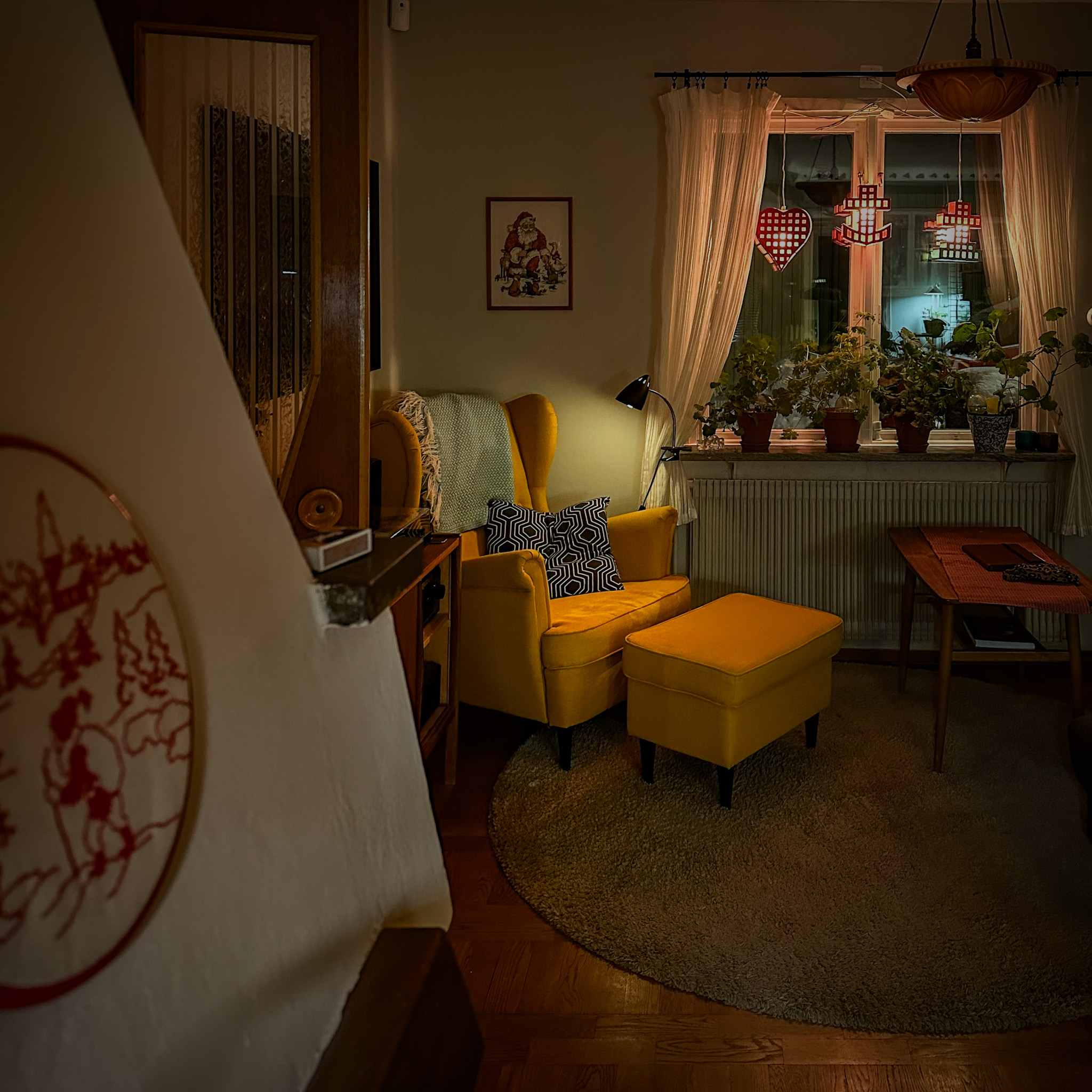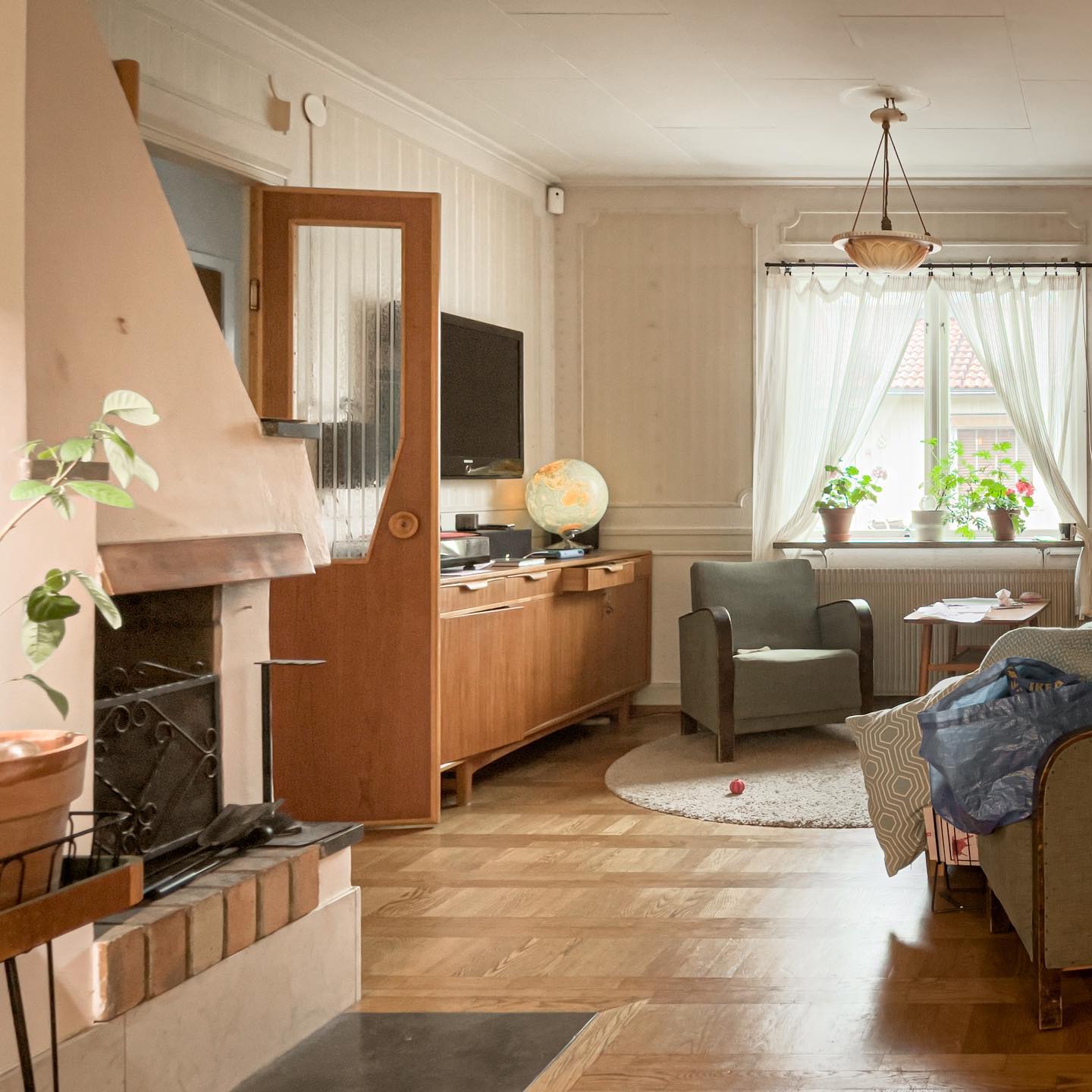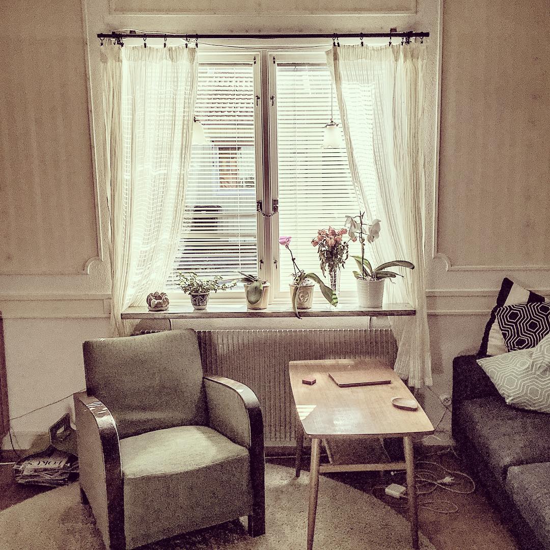 Ersatte 1700-talskornishen med en enkel gardinstång som passar husets ålder bättre. Så småningom ska listverken bort med. #pv7